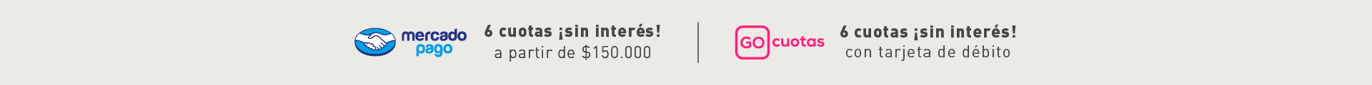 Débito: 6 sin interés | Crédito: 3 sin interés (sin mínimo) - 6 sin interés (desde $150.000)