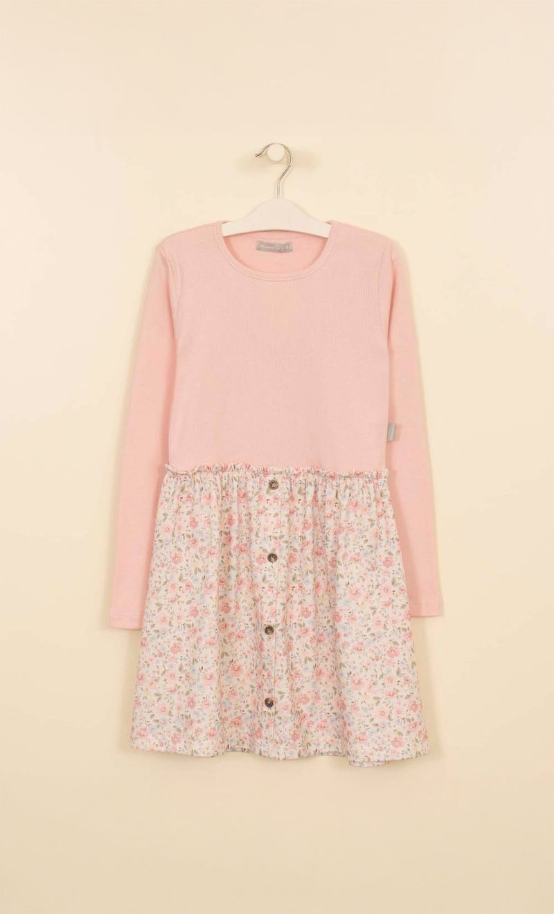 Vestido de rib en al parte superior y en la falda jersey estampado.
