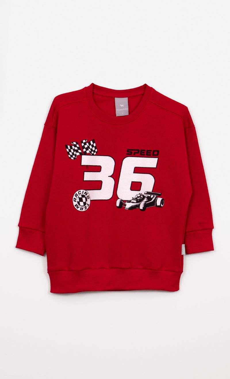 Buzo de frisa ,tiene estampa en delantero.Su calce es con hombros caídos.