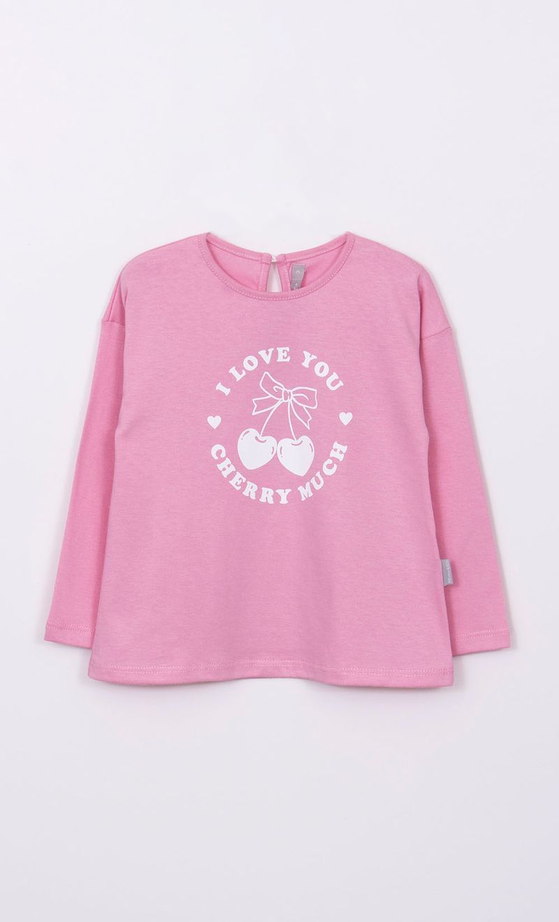 Remera de jersey con estampa, tiene abertura con botón en la espalda.