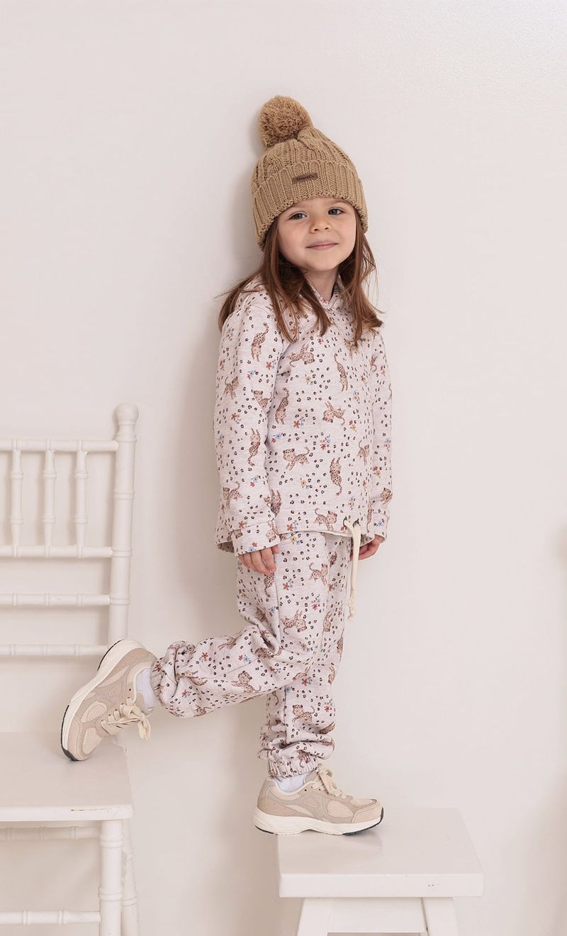Pantalón de frisa estampada.Tiene elástico en la cintura y puños.