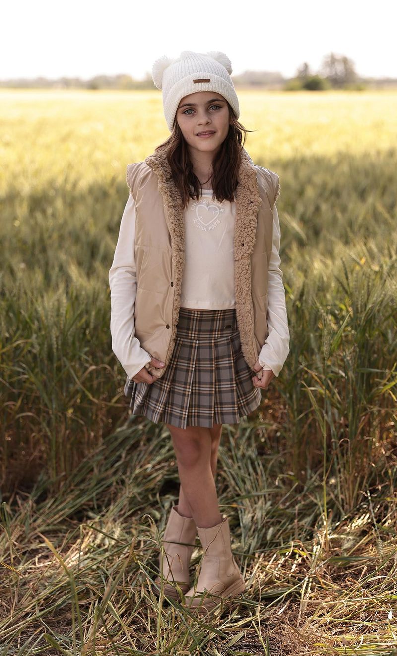 Pollera de viyela escocesa con lurex.Tiene cierre en lateral.