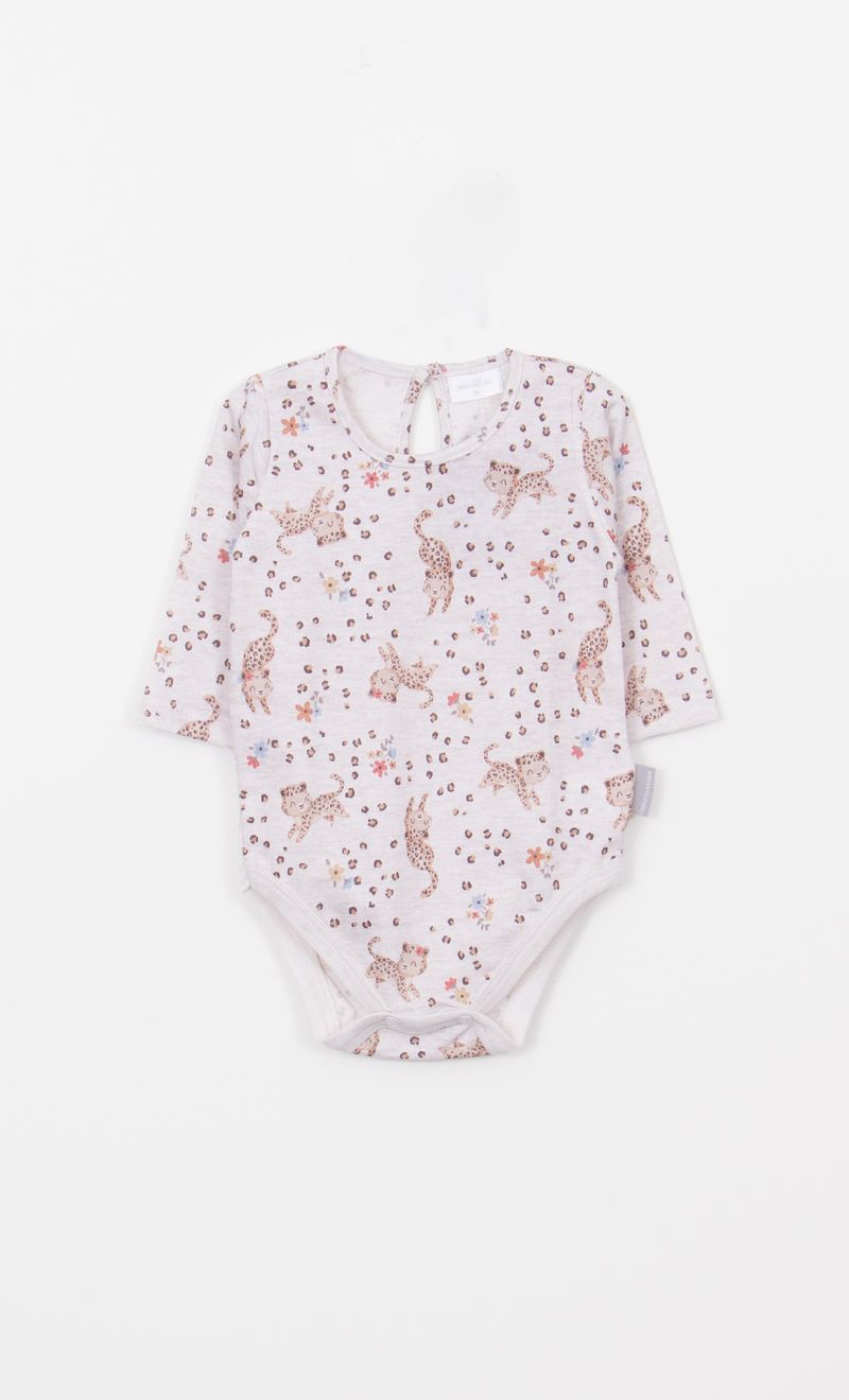Body de jersey estampado, tiene abertura con botón en la espalda.