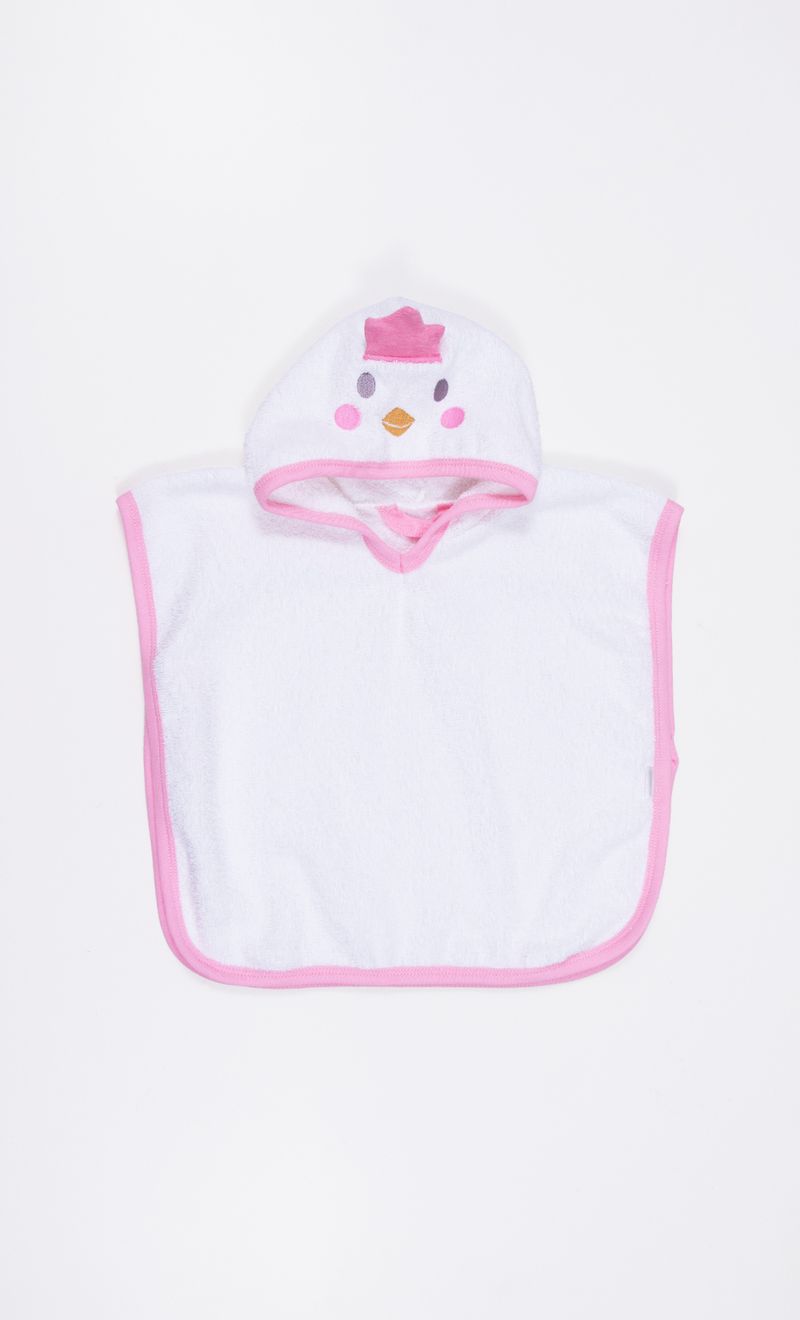Salida de baño de toalla tipo ponchito. Tiene capucha bordada.