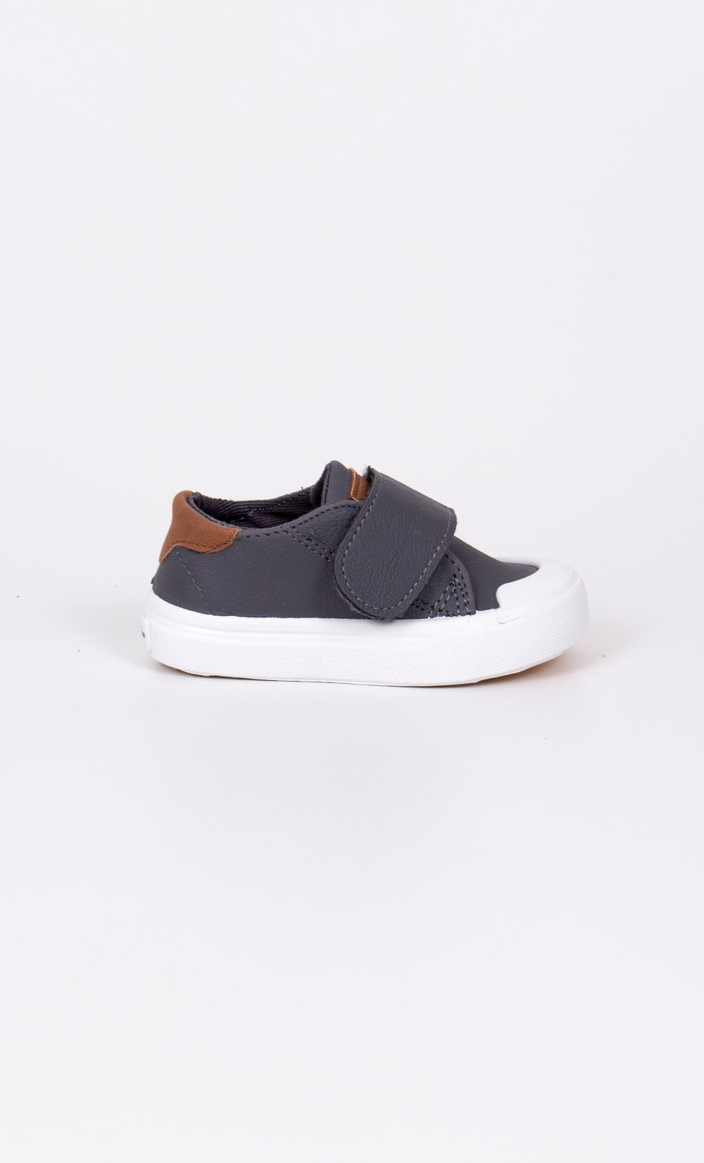 Zapatilla de capellada sintetica, ajuste con tira de velcro para facilitar el calce y detalle simil cuerito en el talon.