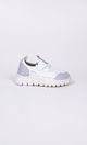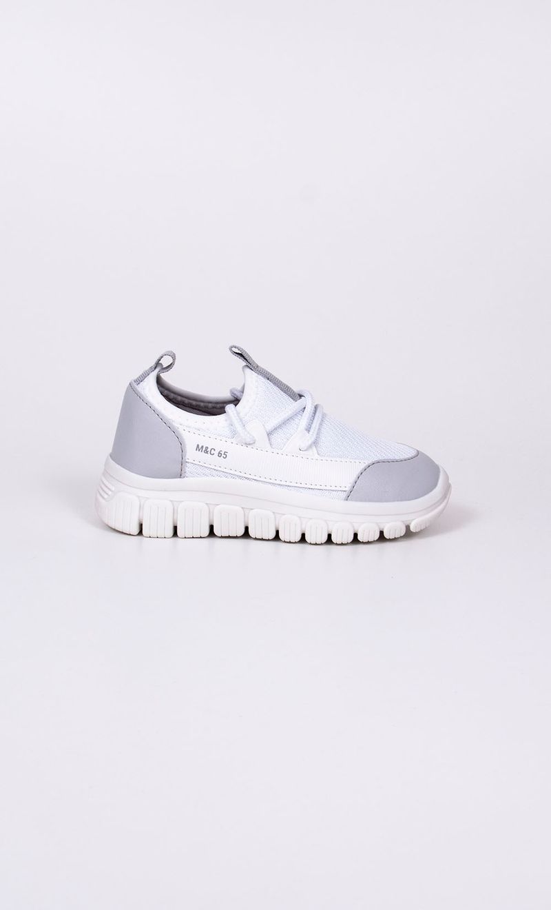 Zapatilla de capellada que combina textil espumado y material simil cuero. De calce fácil, se ajusta sobre el empeine a través de cordones, para adaptarse a todo tipo de empeines. La plantilla es plana y la suela es de goma sintética, flexible, liviana, y perfumada.