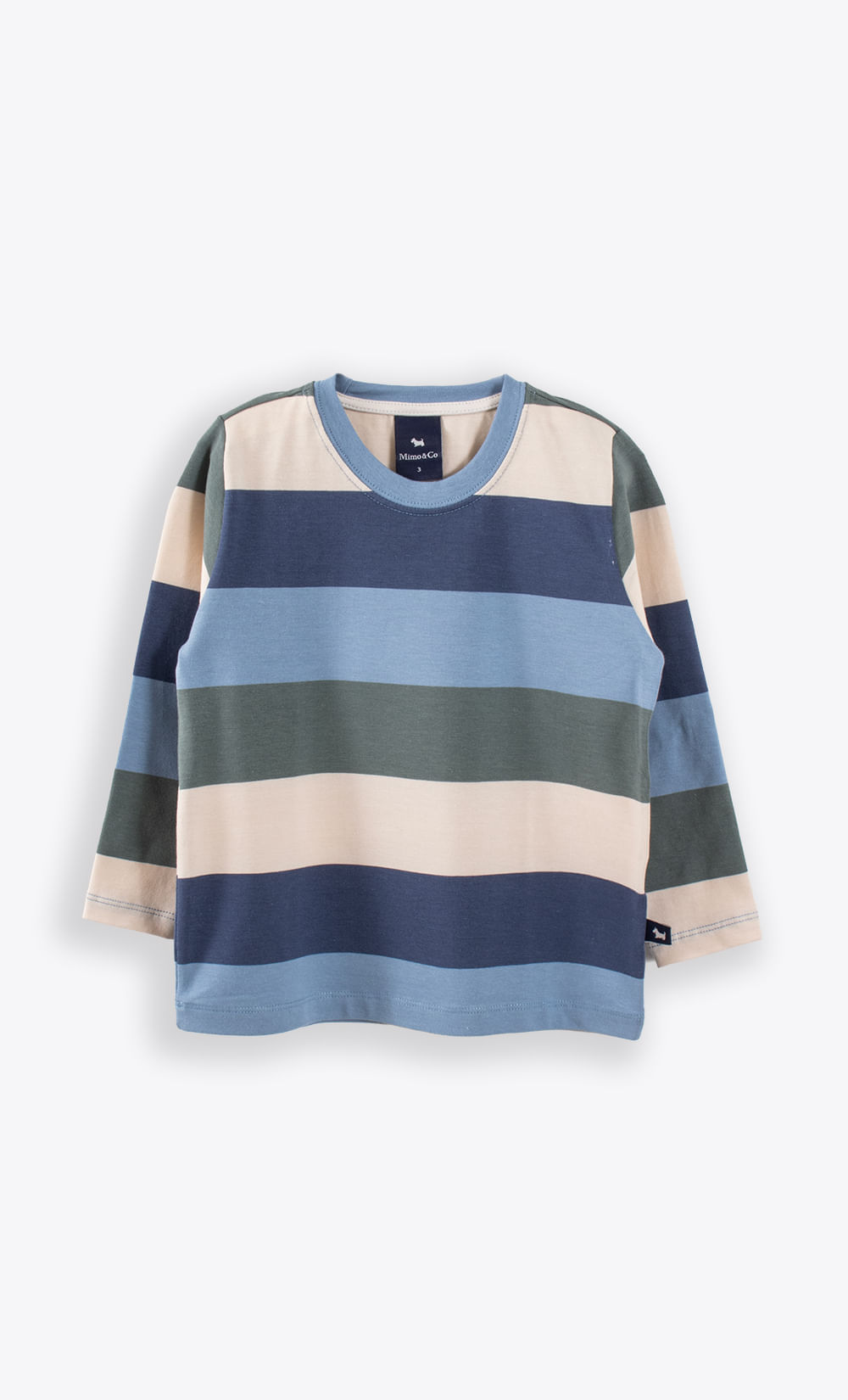 La remera Kid rayada, hecha en jersey rayado con elastano, brinda comodidad y un look canchero para cada conjunto.