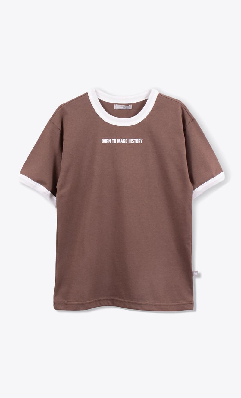 La remera Jr History, hecha en jersey, combinada con collaretas en escote y mangas a contra tono, teine estampa en delantero. Muy canchera para un look urbano.