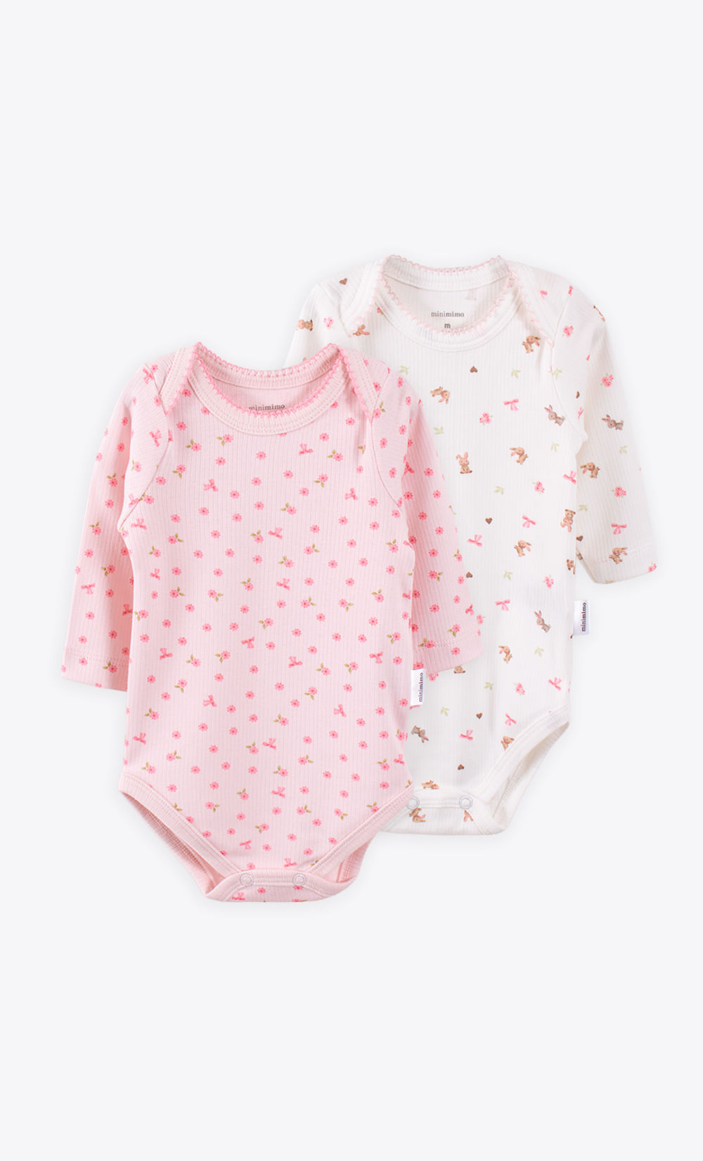 El pack de bodies Mini Carriot estampdo de interlock desagujado, un tejido suave, abrigado y muy resistente que cuida la piel sensible del bebé.