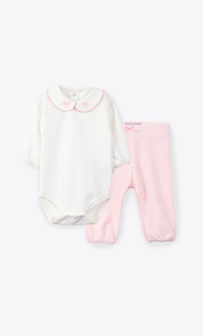 El set mini petite un conjutno de de body de interlcok y pantalón de corderoy de punto. asegurando que tu bebé esté cómoda durante todo el día.