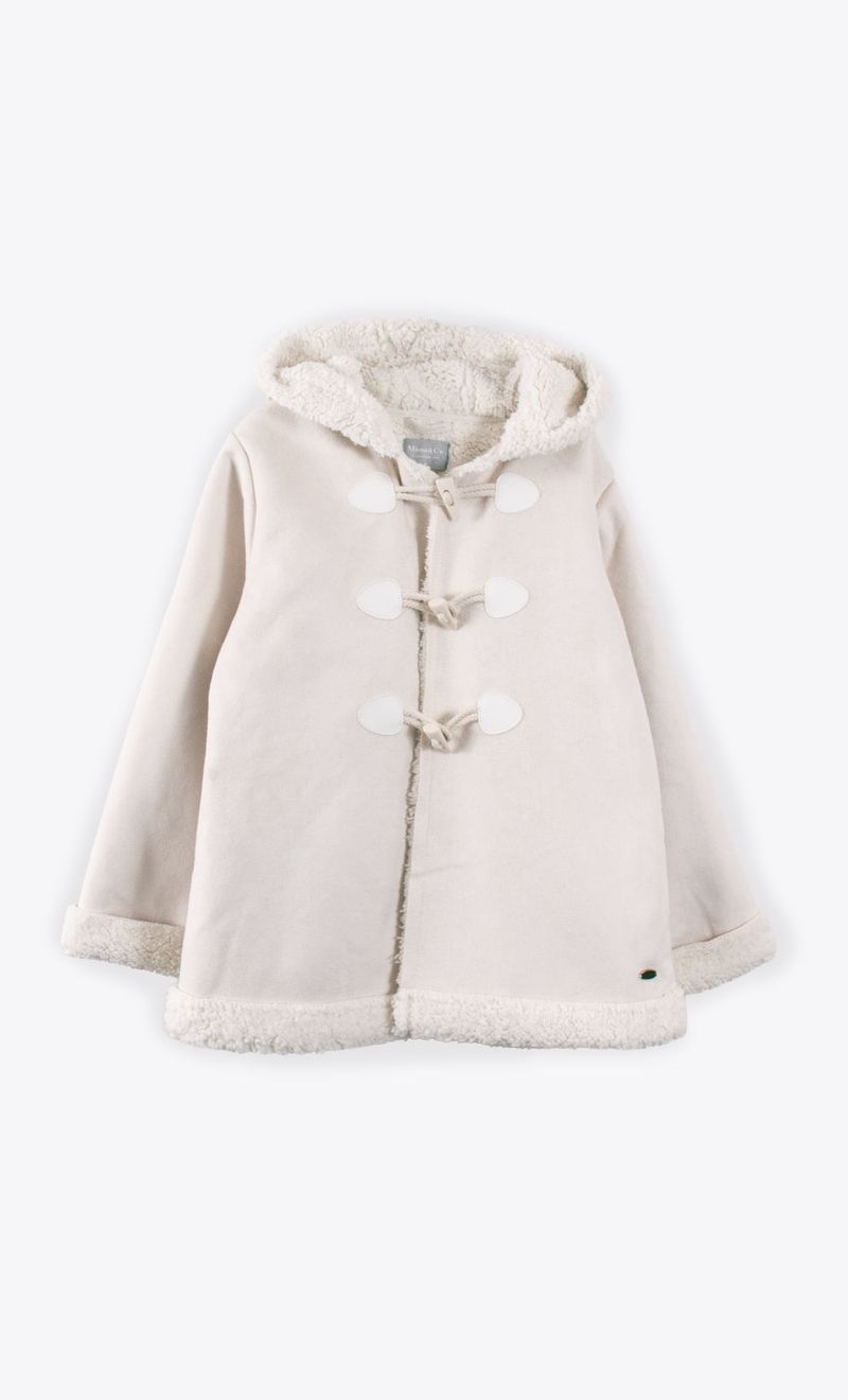 El abrigo Kid Turquía es de gamuza bondeada con corderito, su textura es suave y cálida.