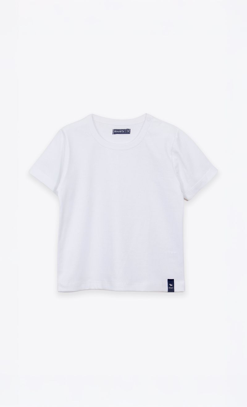 La remera Kid básica, hecha en jersey, cuenta con broche en cartera de hombros para talles del 1 al 3.