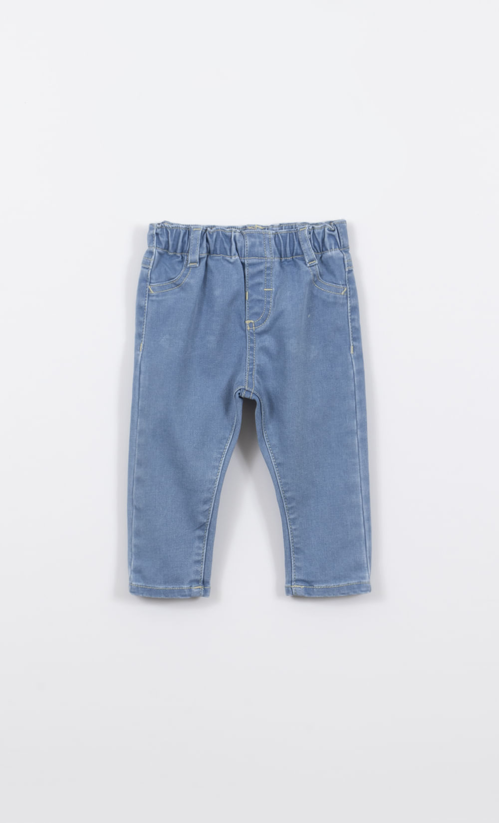Comodidad absoluta para acompañar cada aventura. Jegging de denim con elastano, tiene elástico en cintura.
