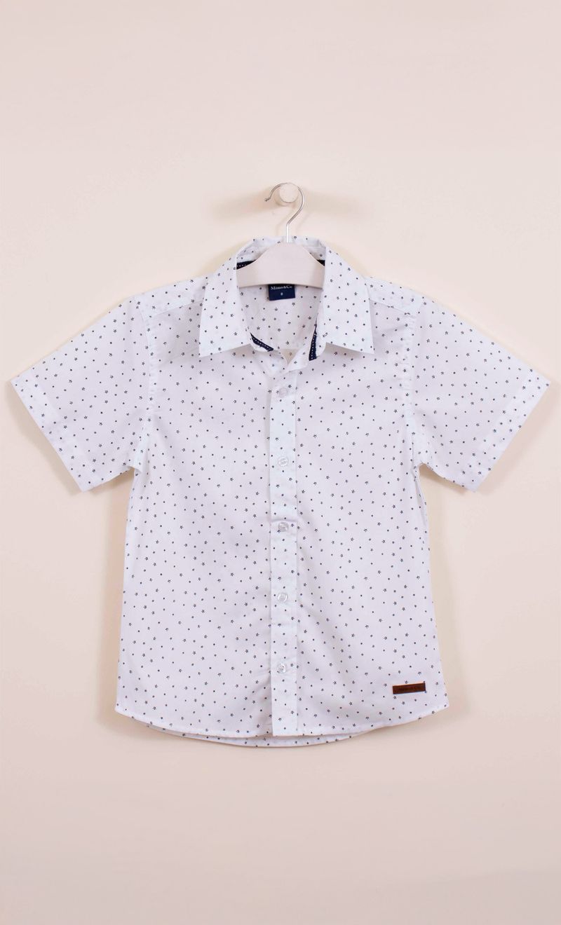 Camisa manga corta de poplin estampado, tiene botones en cartera.