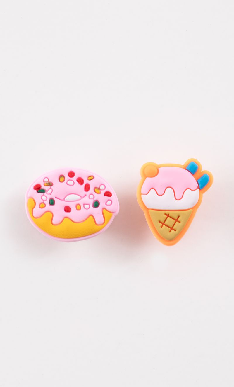 Ponele onda a los zuecos playeros con estos pines giratorios, llenos de color y diversión! Están confeccionados en goma sintética y traen un botón plástico para insertar a presión en los orificios del calzado.