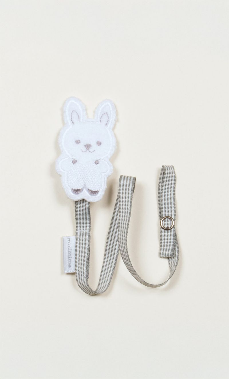 Portachupete de plush con aplique de osito y broche de plástico para el agarre.