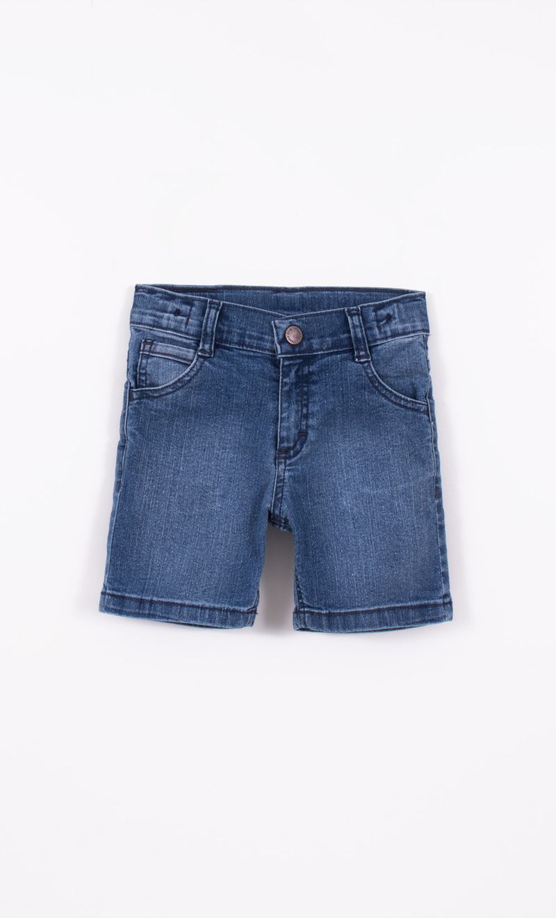 Bermuda de denim elastizado, tiene en interior de cintura elástico con ojal y botón para regular el calce.