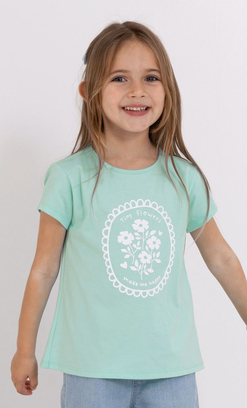 Remera de jersey fresca, divertida y con estampa floral en relieve, tiene abertura con botón en la espalda.