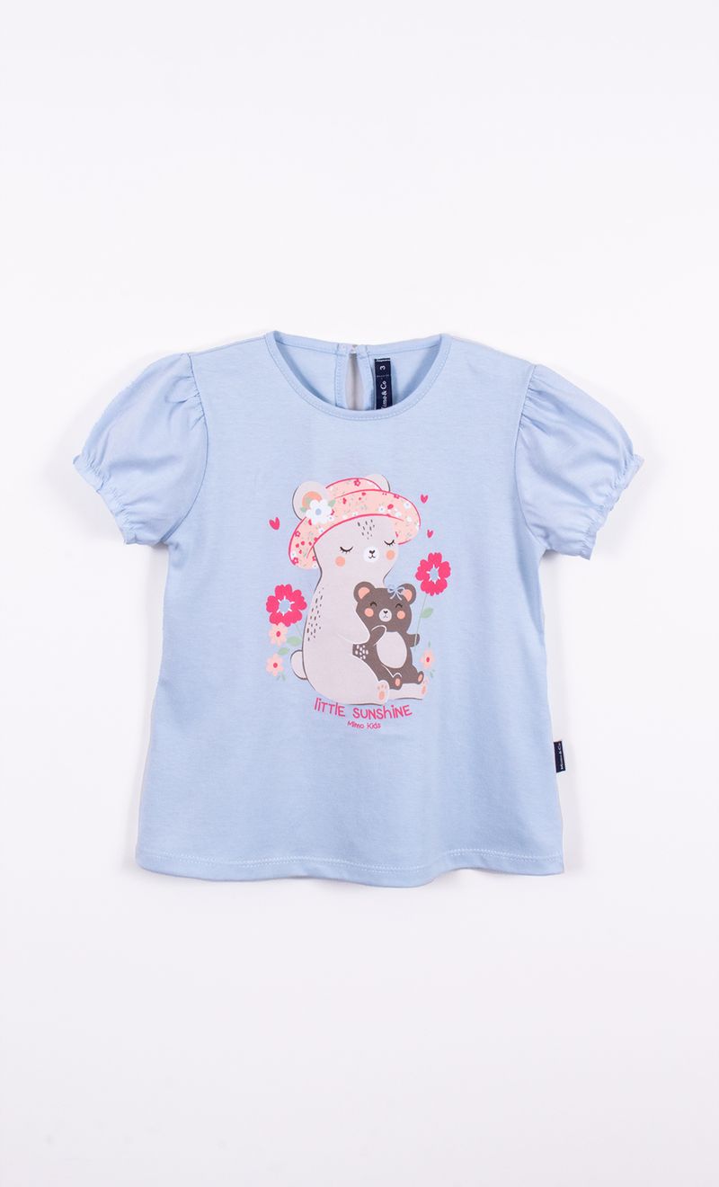 Remera de jersey con estampa, tiene abertura con botón en la espalda.