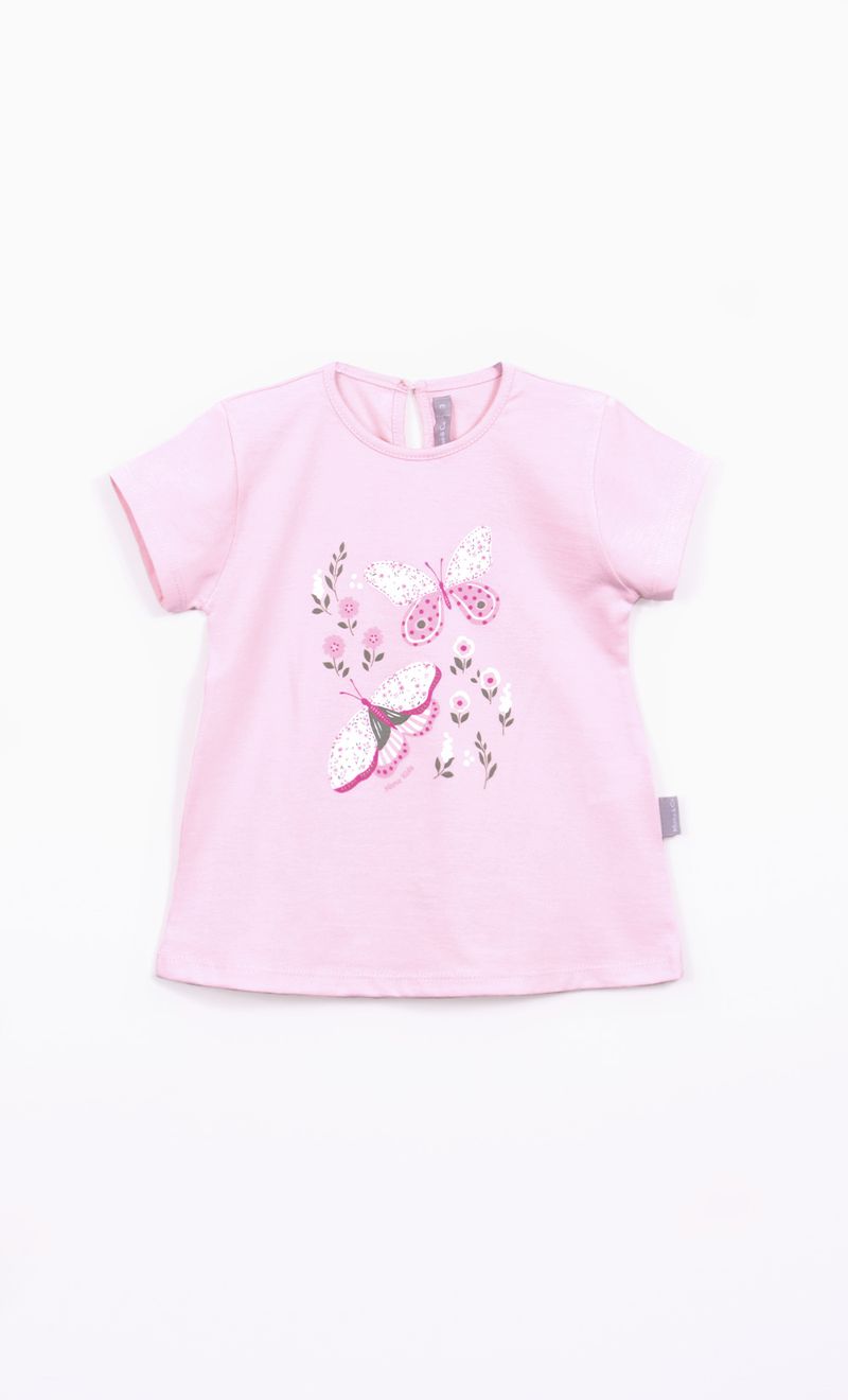 Remera de jersey con estampa, tiene abertura con botón en la espalda. Fácil de combinar.