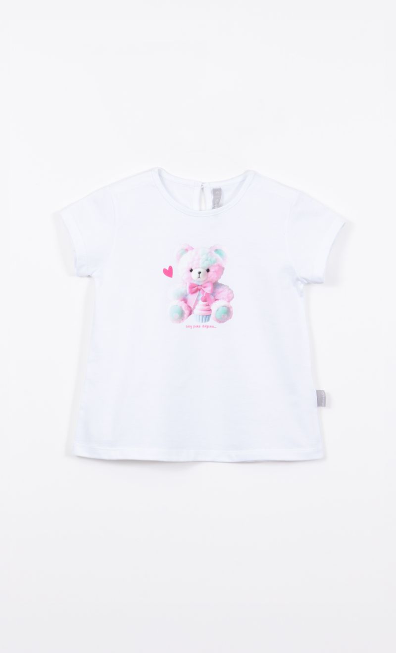 Remera de jersey con estampa, súper práctica para el día a día. Tiene abertura con botón en la espalda.