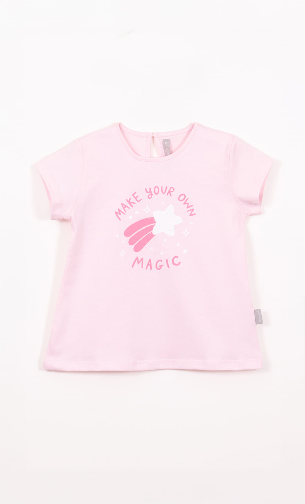 Remera de jersey con estampa, tiene abertura con botón en la espalda. Ternura en una remera que ilumina cualquier look