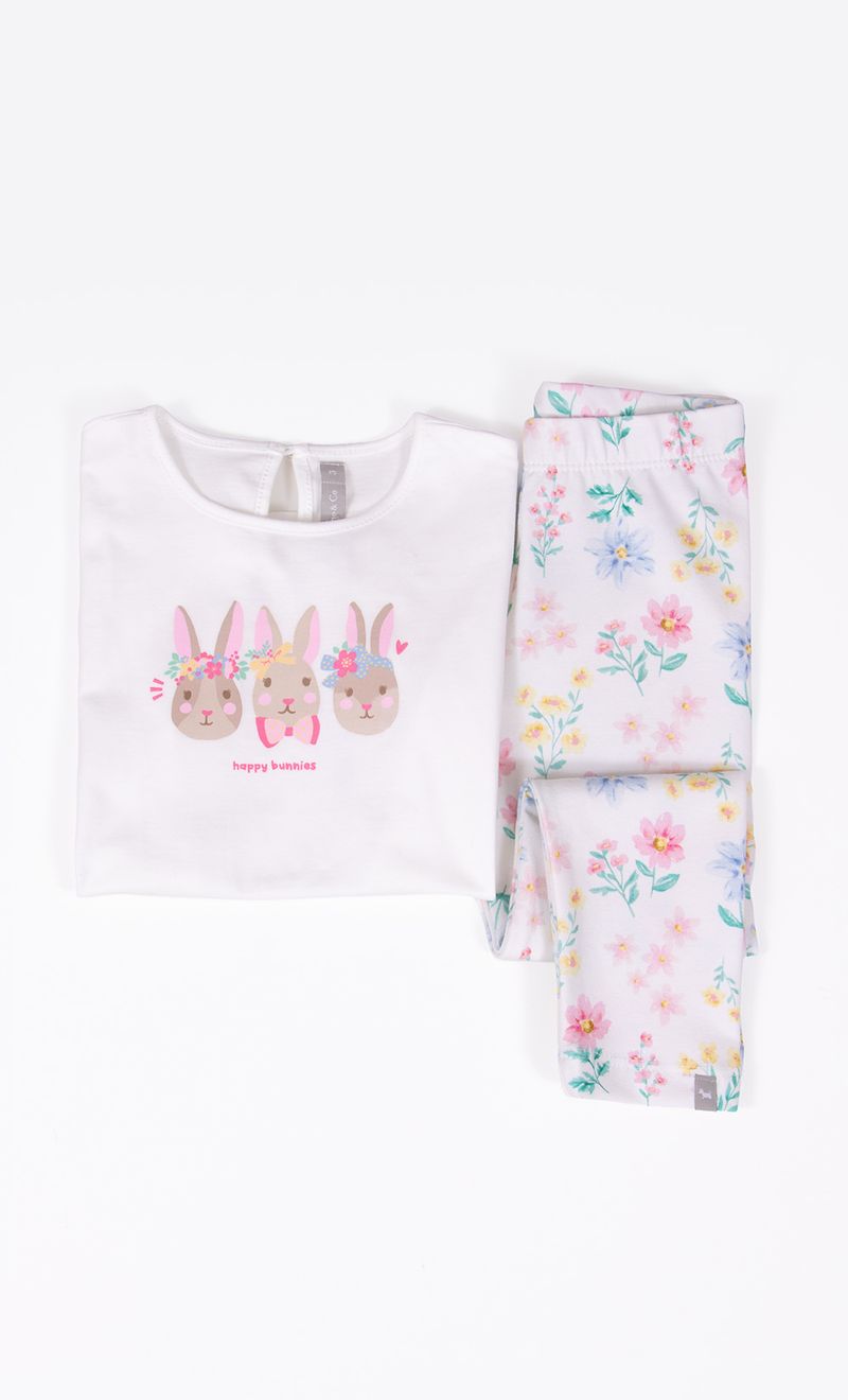 El conjunto para usar todos los días. Suave, canchero y cómodo. La remera de jersey tiene una estampa. Leggings de jersey estampado con elastano. Un básico infaltable.