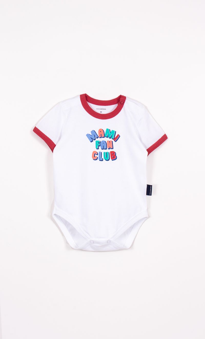 Body de jersey, con collaretas de mangas y escote a contra tono, tiene estampa en delantero, broche arito en escote y entrpiernas para su acceso.
