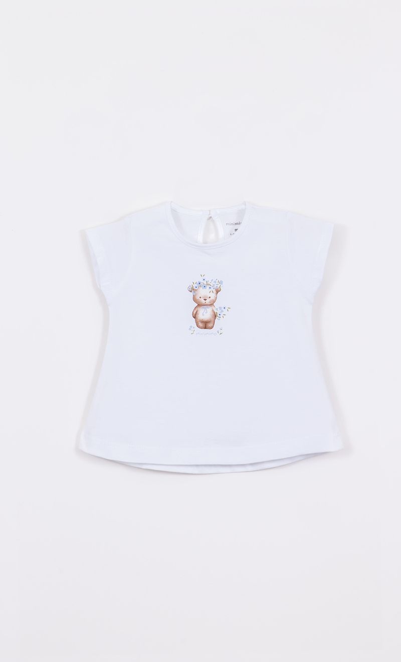 Remera de jersey con estampa tierna y delicada, tiene abertura con botón en la espalda.