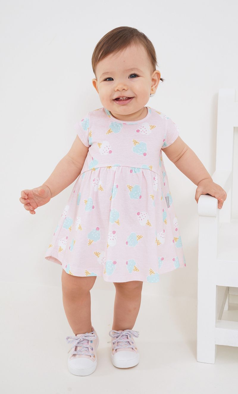 Vestido de jersey estampado, tiene abertura con botón en la espalda. Un diseño fresco y delicado, ideal para los días cálidos.