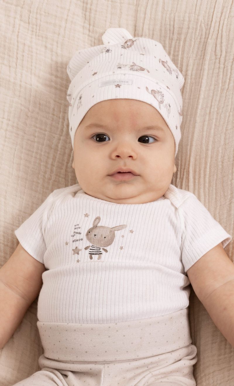 Body de interlock desagujado con estampa.Un clásico y práctico que acompaña cada momento del día de tu bebé.