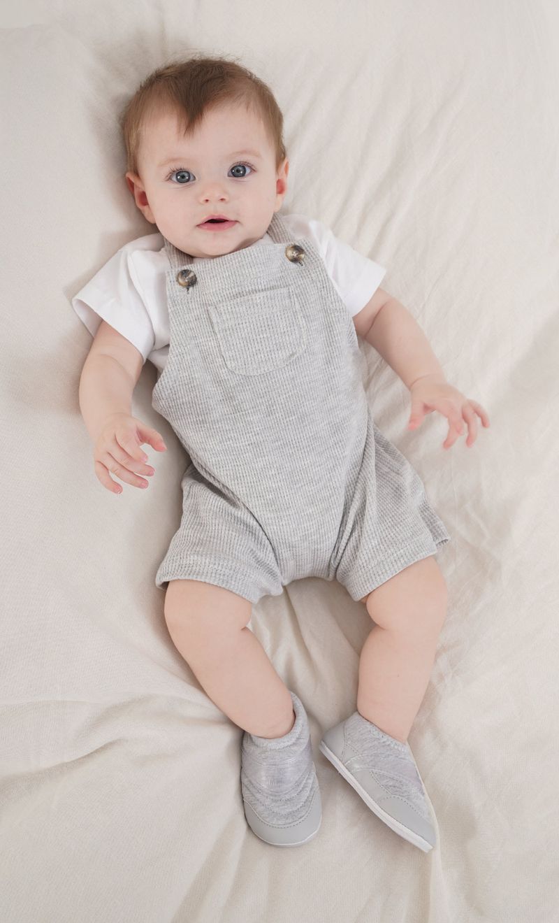 Jardinero de waffle unisex, tiene breteles regulbles, con ojal y botón.